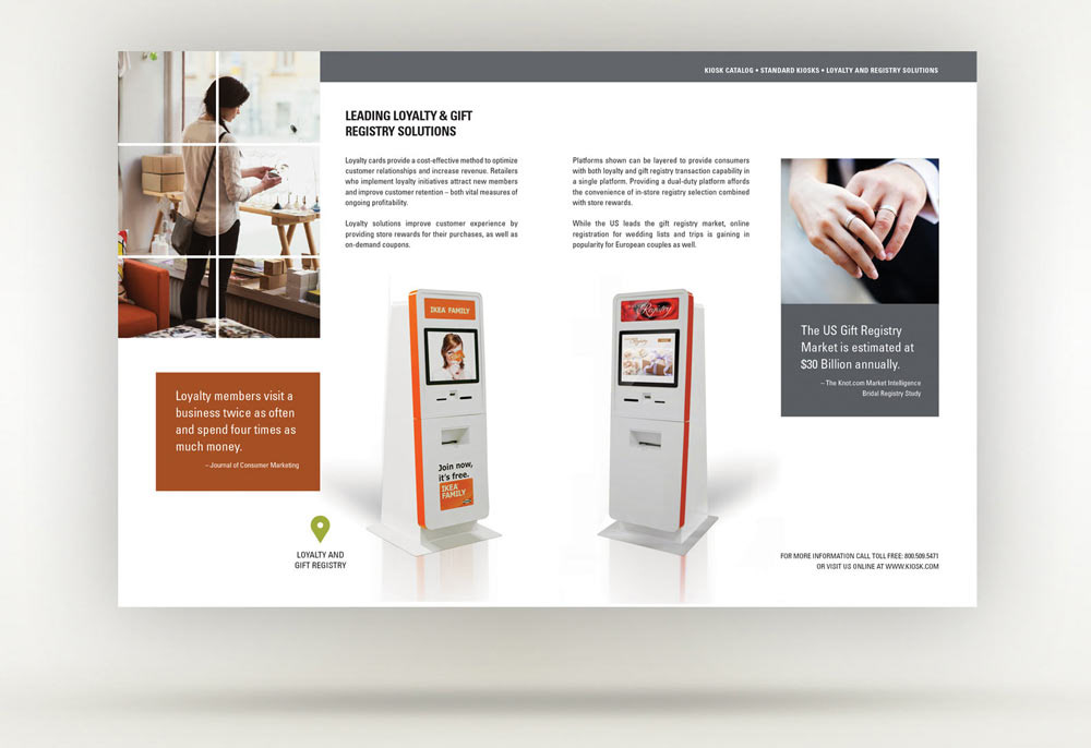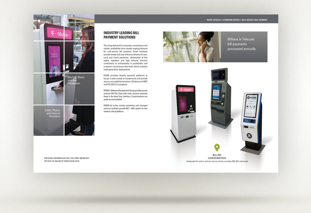 KIOSK Company Brochure. Full-color, bifold brochure. Finished size 8.5"x11" (A4 International versions as well)